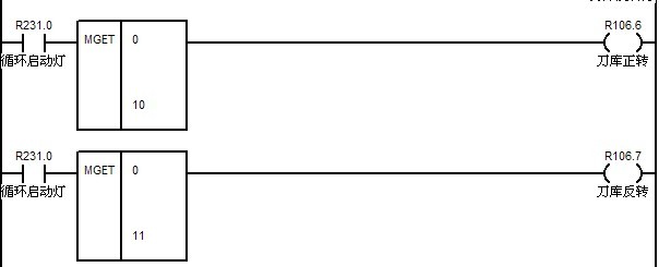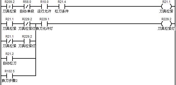 該程序段的意思是當(dāng)兩個(gè)寄存器的值相等,則表示當(dāng)前所選刀與當(dāng)前主軸上的刀號(hào)相同,不進(jìn)行換刀。
