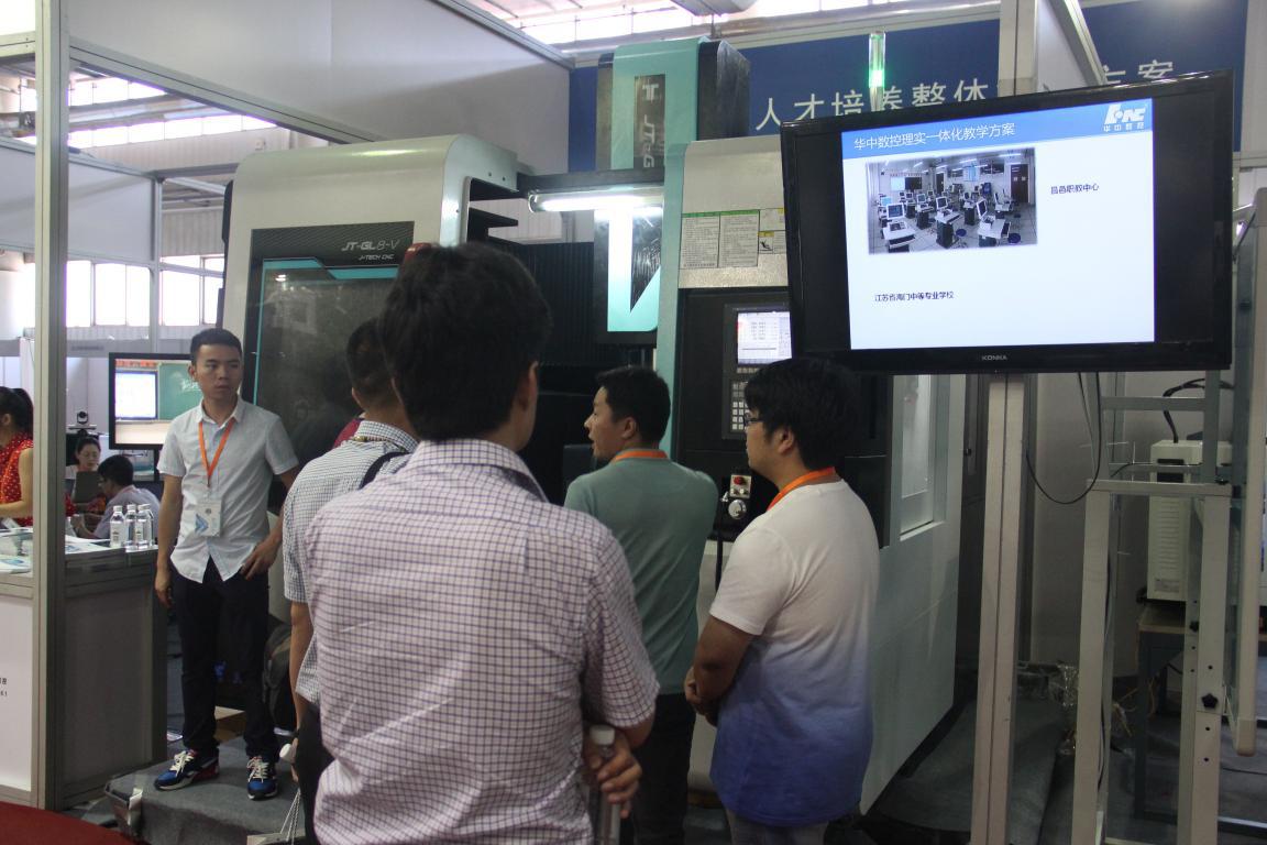 武漢華中數(shù)控股份有限公司在為全國職業(yè)院校技能大賽數(shù)控項目比賽提供比賽平臺和技術(shù)支持的同時,積極參加了本次展會。本次展品為理實一體化教室、機器人、五軸聯(lián)動數(shù)控系統(tǒng)機床展示、華中數(shù)控8型高檔智能數(shù)控系統(tǒng)和綜合模擬仿真實驗室,這些產(chǎn)品吸引大批參會人員問詢和參觀。