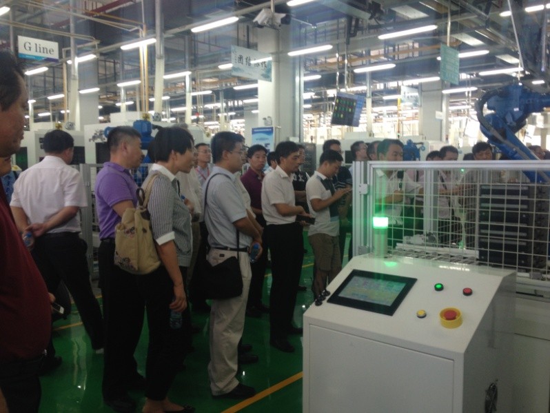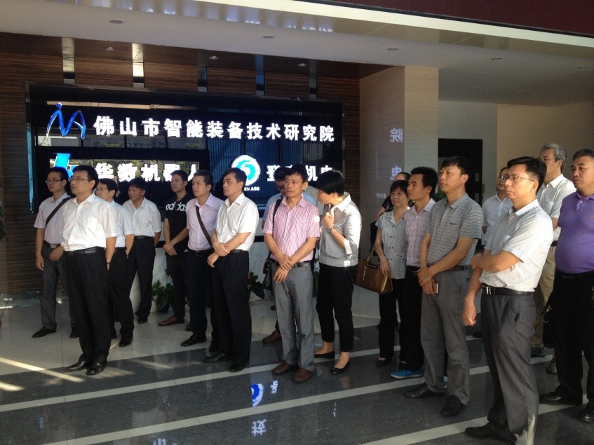 上午9時(shí),與會(huì)代表一行參觀了佛山市智能裝備技術(shù)研究院,佛山華數(shù)機(jī)器人有限公司賀部長(zhǎng)帶領(lǐng)大家參觀了機(jī)器人生產(chǎn)研發(fā)車間,介紹了華數(shù)機(jī)器人最新研發(fā)產(chǎn)品。然后,與會(huì)代表一起座談,針對(duì)如何校企合作,建設(shè)智能制造示范基地,培養(yǎng)時(shí)代需要的智能制造人才進(jìn)行研討。