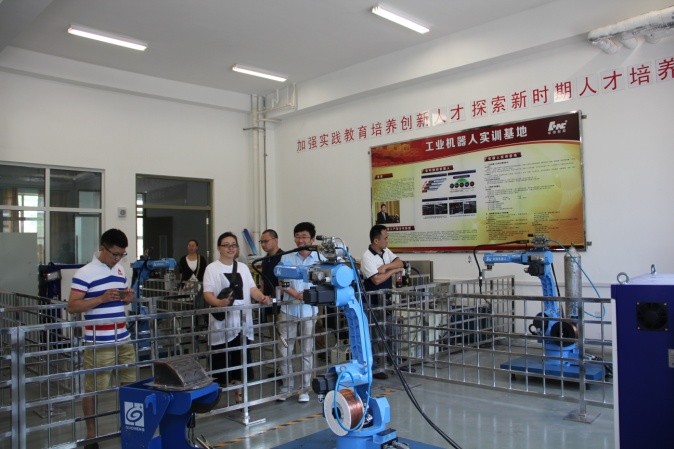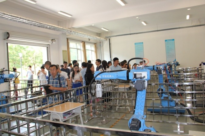 典禮儀式結(jié)束后,全體與會人員合影留念,并且一起參觀了學(xué)院實訓(xùn)車間,對學(xué)院良好的教學(xué)實訓(xùn)條件和敬業(yè)勤勞的教師隊伍留下深刻印象。全體培訓(xùn)教室就工業(yè)機器人、智能制造等相關(guān)專業(yè)的教育教學(xué)、實訓(xùn)實踐等內(nèi)容進行了交流和研討。本次培訓(xùn)為期10天,將主要就工業(yè)機器人指令、電氣系統(tǒng)、控制原理、離線編程、操作、拆裝等內(nèi)容進行培訓(xùn),培訓(xùn)指導(dǎo)工作由校企合作雙方的近10位老師共同完成,其中包括華中數(shù)控精心選派的孫海亮、石義淮、楊威、劉豐等具有豐富教學(xué)、實踐經(jīng)驗的老師。