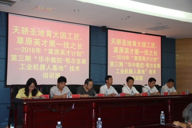 “天驕圣地育大國工匠,草原英才展一技之長?!?月25日-8月4日,華中數(shù)控與鄂爾多斯職業(yè)學(xué)院合辦的“2016草原英才計劃”——工業(yè)機器人培訓(xùn)班在內(nèi)蒙古鄂爾多斯職業(yè)院校成功舉辦。來自廣州工程技術(shù)職業(yè)學(xué)院、河北工業(yè)職業(yè)技術(shù)學(xué)院、武漢軟件工程職業(yè)學(xué)院、福建工業(yè)學(xué)校、衡水學(xué)院、遼寧建筑職業(yè)學(xué)院等近20所院校的四十余名教師參加了本次培訓(xùn),普遍反映收獲很大,感謝華中數(shù)控和鄂爾多斯職業(yè)學(xué)院共同提供了很好的學(xué)習(xí)平臺,針對工業(yè)機器人的教學(xué)和實訓(xùn),大家共同研討、共同學(xué)習(xí)。培訓(xùn)期間,各位老師對鄂爾多斯這塊神奇的地方、天驕圣地留下深刻印象,感受到內(nèi)蒙古獨特的文化魅力和自然風(fēng)景。
