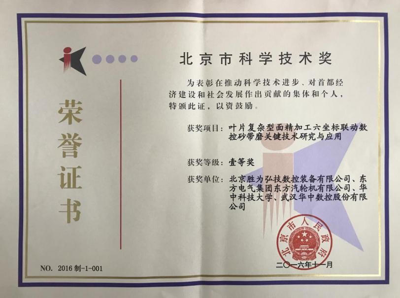 ? ? ?為表彰在推動科學(xué)技術(shù)進步,對首都經(jīng)濟建設(shè)和社會發(fā)展作出貢獻的社會集體和個人,2017年4月26日,北京市2016年度科學(xué)技術(shù)獎勵大會在北京會議中心隆重舉行。華中數(shù)控以“葉片復(fù)雜型面精加工六坐標(biāo)聯(lián)動數(shù)控砂帶磨關(guān)鍵技術(shù)研究與應(yīng)用”項目榮獲科學(xué)技術(shù)一等獎。