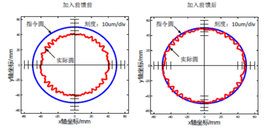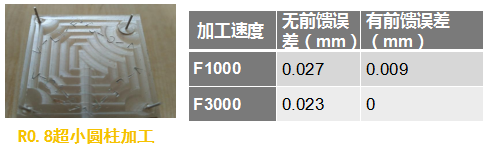 速度前饋控制,有效減小了高速加工過程中的跟蹤誤差波動(dòng),提高輪廓精度。尤其是在超小直徑圓弧加工效果明顯。