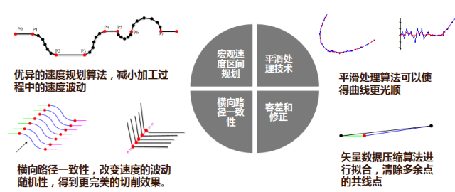 高效的速度規(guī)劃,尤其是對(duì)轉(zhuǎn)角降速、減速速度處理,在3C應(yīng)用得心應(yīng)手,極大提高加工的效率、加工精度和機(jī)床運(yùn)行的平順性。