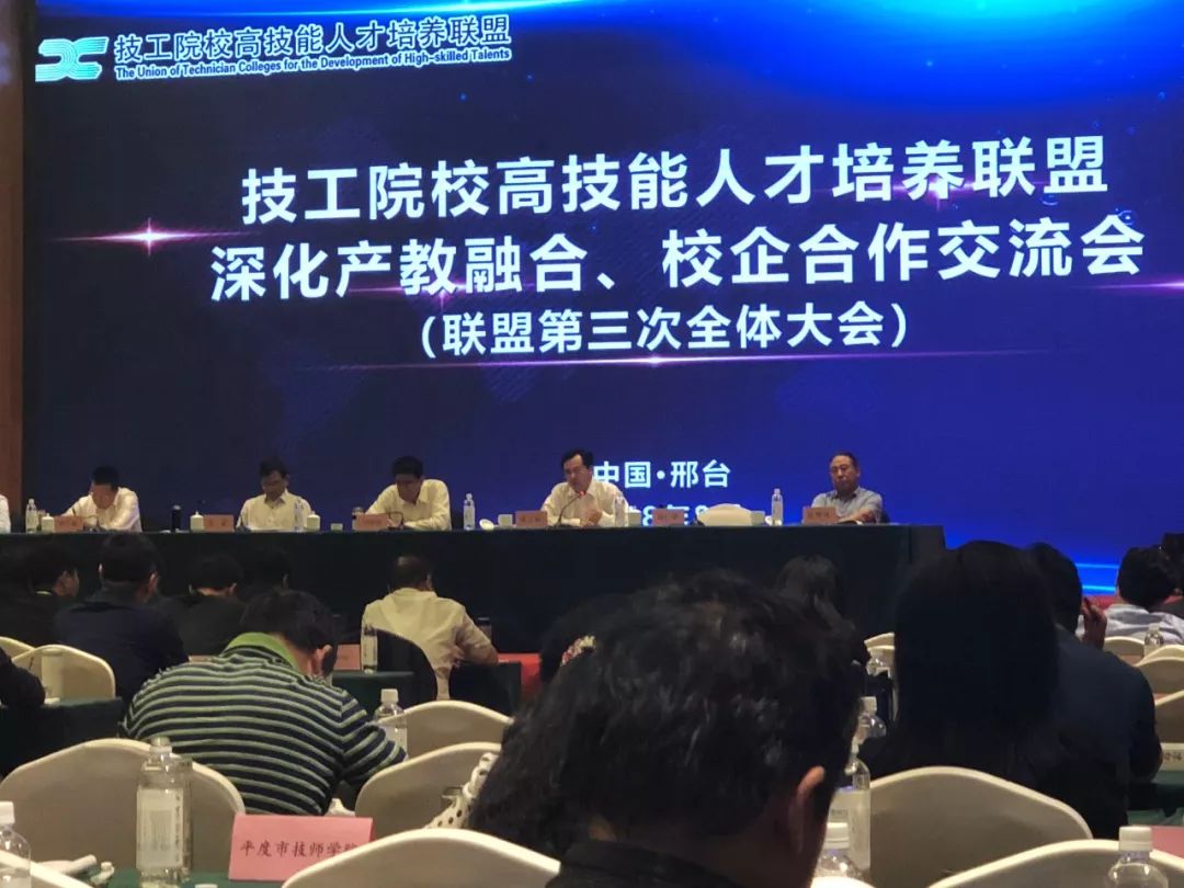 ? ? ? 9月26日,技工院校高技能人才培養(yǎng)聯(lián)盟(以下簡(jiǎn)稱“聯(lián)盟”)深化產(chǎn)教融合校企合作交流會(huì)(第三次會(huì)議)在邢臺(tái)技師學(xué)院隆重召開,人力和社會(huì)保障部原副部長(zhǎng)王曉初、人社部職業(yè)能力建設(shè)司司長(zhǎng)張立新、邢臺(tái)技師學(xué)院院長(zhǎng)荀鳳元、華中數(shù)控總裁田茂勝等有關(guān)領(lǐng)導(dǎo)出席會(huì)議。來自全國(guó)200多所聯(lián)盟技工院校代表和多家校企聯(lián)盟合作企業(yè)代表等400余人參加會(huì)議 。