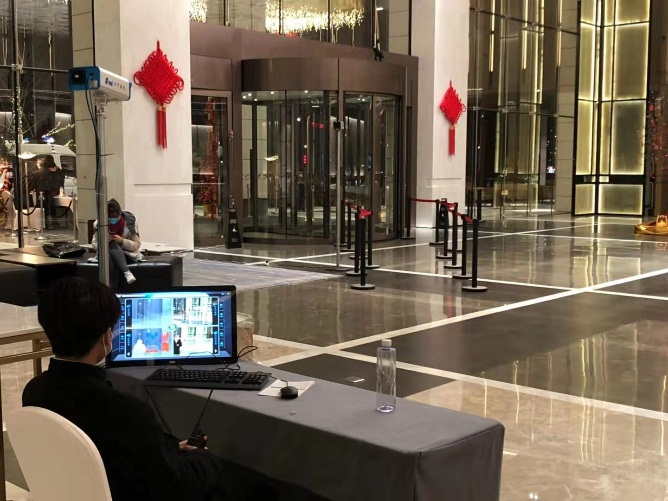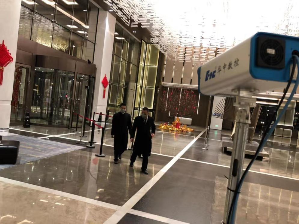 1月26日,正月初二,上午,華中數(shù)控紅外事業(yè)部宋天教等同事,緊急趕赴卓爾萬豪酒店現(xiàn)場(chǎng),在酒店大堂專設(shè)體溫檢測(cè)處迅速安裝華中數(shù)控“紅外熱成像智能體溫檢測(cè)系統(tǒng)”,馬上投入設(shè)備安裝調(diào)試、培訓(xùn)操作方法等工作,通過對(duì)援漢醫(yī)療團(tuán)隊(duì)成員的體溫監(jiān)測(cè),嚴(yán)格檢查健康狀況,確保醫(yī)療團(tuán)隊(duì)的生命安全,為援漢醫(yī)療團(tuán)隊(duì)筑起生命健康“第一道防線”。