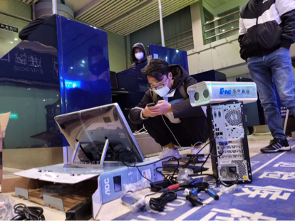 2月27日,華中數(shù)控接到海關總署要求在北京西客站加裝“紅外熱成像智能人體測溫系統(tǒng)”的通知,火速派出工程師崔曉龍、邱志新和吳碩等趕赴現(xiàn)場。團隊成員熱情高漲,戴上口罩,脫掉厚重的棉衣輕裝上陣,聚精會神的盯著控制屏幕,爭分奪秒安裝調試“紅外熱成像智能體溫檢測系統(tǒng)”,滿足國際列車旅客出入境疫情防控需求。