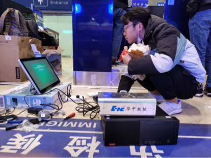 ? 華中數(shù)控工程師在北京西客站國際列車出入境聯(lián)檢大廳現(xiàn)場安裝設備?