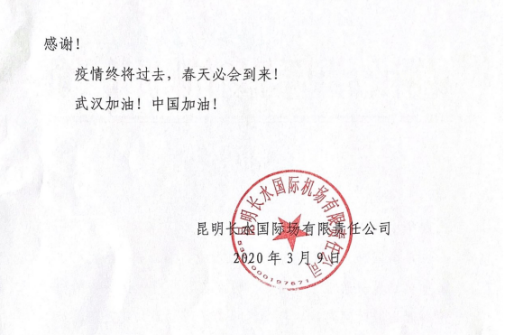 ? ? ? ? ? ? ? ? ? ? ? ? ? ? ? ? ? ? ? ? ? ? ? ? ? ? ? ? ? ? ? ? ? ? ? ? ? 昆明機(jī)場(chǎng)發(fā)來(lái)的感謝信